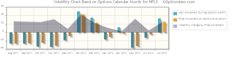 Topic: Optionslam.com Options Volatility ChartBlue Bar: This is the maximum price movement from the opening price on Options month start date to the highest high or lowest low during the options month. Yellow Bar: This is the final price movement from the opening price on Options month start date to the closing price on Options month expire date. Grey Shadow: Shadow size is the absolute value of the final price movement of each Options month. This shadow trend line presents the volatility change for last 12 months.